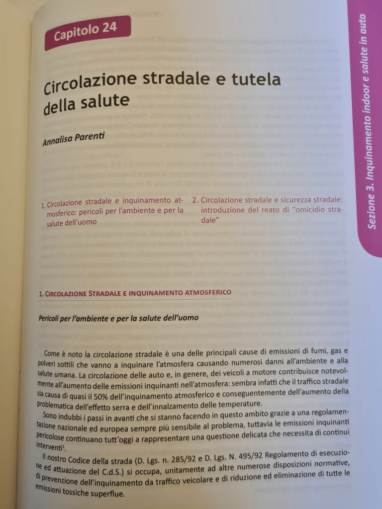 Nel capitolo 24 a pagina 423, troveremo l’intervento dell’avvocato Annalisa Parenti, la quale espone il concetto di tutela della salute riguardante la circolazione stradale, attraverso due punti: